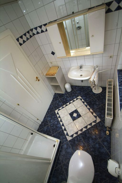 Das Bad mit Dusche und WC ist mit seinem